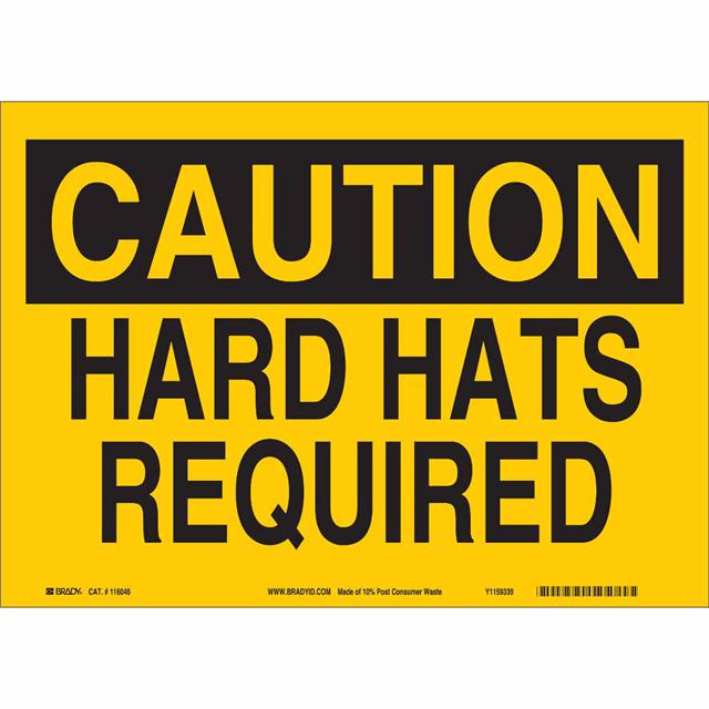 This is manufactured by Brady Corporation. The manufacturer part number is 116211. Label with a size of 10.00" l x 7.00" w (254.0mm x 177.8mm). The product is not applicable. It is assigned with possible HTSUS value of 3926.90.9985. It is shipped in bulk package . It has a classic black legend, yellow background colour. The product brady®, is a highly preferred choice for users. The product is made from highly stable and reliable polypropylene. In addition, it is reach unaffected. Its typical moisture sensitivity level is not applicable. A bespoke label is a caution. hard hats required label. The product is suitable for use with caution. The product is designated with the ear99 code number.