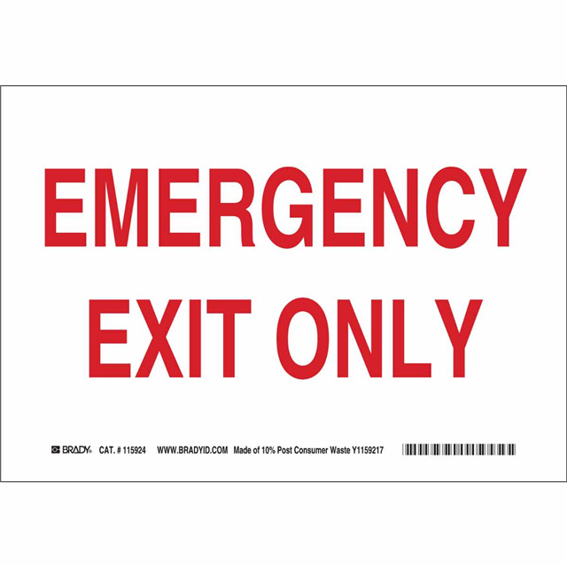This is manufactured by Brady Corporation. The manufacturer part number is 118145. Label with a size of 14.00" l x 10.00" w (355.6mm x 254.0mm). The product is not applicable. It is assigned with possible HTSUS value of 3926.90.9989. It has a classic red legend, white background colour. The product brady®, is a highly preferred choice for users. The product is made from highly stable and reliable plastic. In addition, it is reach unaffected. Its typical moisture sensitivity level is not applicable. In addition, bulk is the available packaging type of the product. A bespoke label is a emergency exit only label. The product is suitable for use with emergency. The brady corporation's product offers user-desired applications. The product is designated with the ear99 code number.