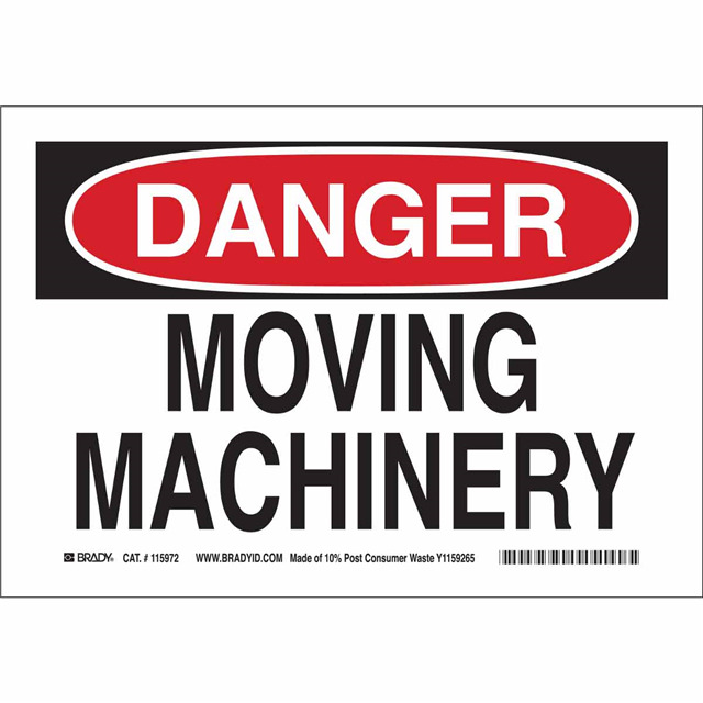 This is manufactured by Brady Corporation. The manufacturer part number is 118193. Label with a size of 14.00" l x 10.00" w (355.6mm x 254.0mm). The product is not applicable. It is assigned with possible HTSUS value of 3926.90.9989. It has a classic black and red legend, white background colour. The product brady®, is a highly preferred choice for users. The product is made from highly stable and reliable plastic. In addition, it is reach unaffected. Its typical moisture sensitivity level is not applicable. In addition, bulk is the available packaging type of the product. A bespoke label is a danger. moving machinery label. The product is suitable for use with danger. The brady corporation's product offers user-desired applications. The product is designated with the ear99 code number.