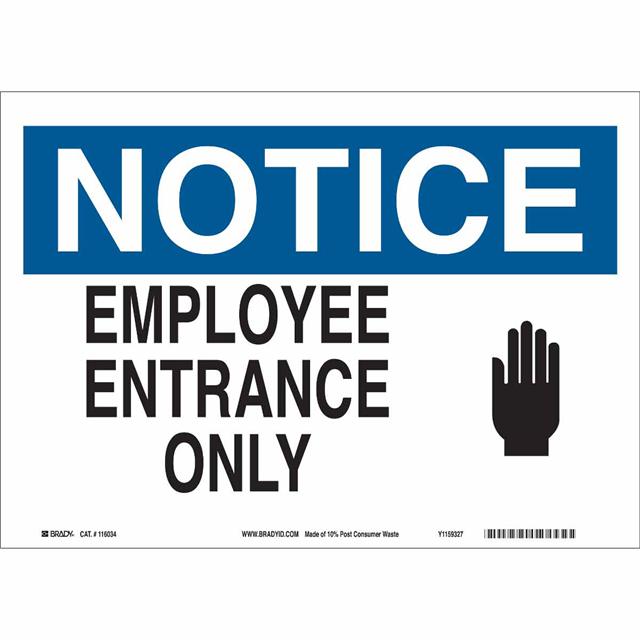This is manufactured by Brady Corporation. The manufacturer part number is 118254. Label with a size of 14.00" l x 10.00" w (355.6mm x 254.0mm). The product is not applicable. It is assigned with possible HTSUS value of 3926.90.9985. It is shipped in bulk package . It has a classic black and blue legend, white background colour. The product brady®, is a highly preferred choice for users. The product is made from highly stable and reliable plastic. In addition, it is reach unaffected. Its typical moisture sensitivity level is not applicable. A bespoke label is a notice. employee entrance only label. The product is suitable for use with notice. It has a long 4 weeks standard lead time. The product is designated with the ear99 code number.