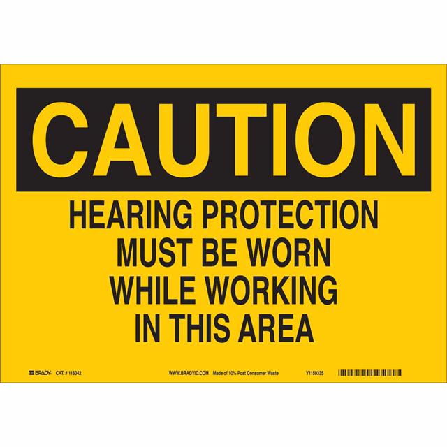 This is manufactured by Brady Corporation. The manufacturer part number is 118262. Label with a size of 14.00" l x 10.00" w (355.6mm x 254.0mm). The product is not applicable. It is assigned with possible HTSUS value of 3926.90.9985. It is shipped in bulk package . It has a classic black legend, yellow background colour. The product brady®, is a highly preferred choice for users. The product is made from highly stable and reliable plastic. In addition, it is reach unaffected. Its typical moisture sensitivity level is not applicable. A bespoke label is a caution. hearing protection must be worn while working in this area label. The product is suitable for use with warning. It has a long 4 weeks standard lead time. The product is designated with the ear99 code number.