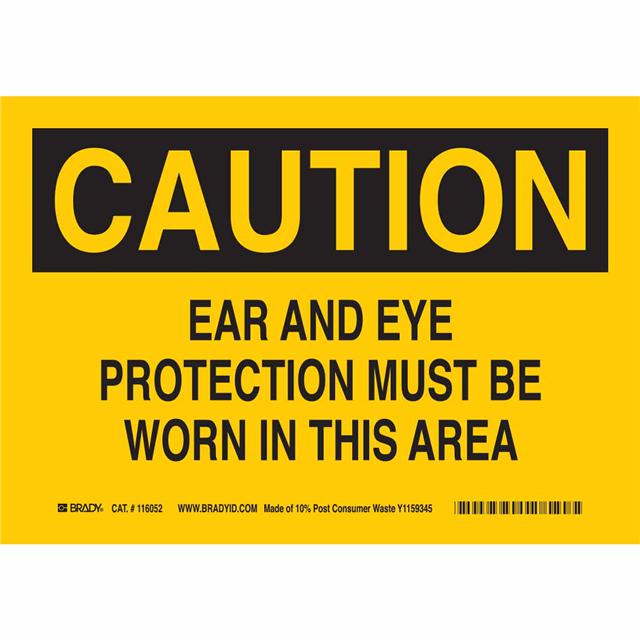 This is manufactured by Brady Corporation. The manufacturer part number is 118273. Label with a size of 14.00" l x 10.00" w (355.6mm x 254.0mm). The product is not applicable. It is assigned with possible HTSUS value of 3926.90.9985. It is shipped in bulk package . It has a classic black legend, yellow background colour. The product brady®, is a highly preferred choice for users. The product is made from highly stable and reliable plastic. In addition, it is reach unaffected. Its typical moisture sensitivity level is not applicable. A bespoke label is a caution. ear and eye protection must be worn in this area label. The product is suitable for use with caution. It has a long 4 weeks standard lead time. The product is designated with the ear99 code number.