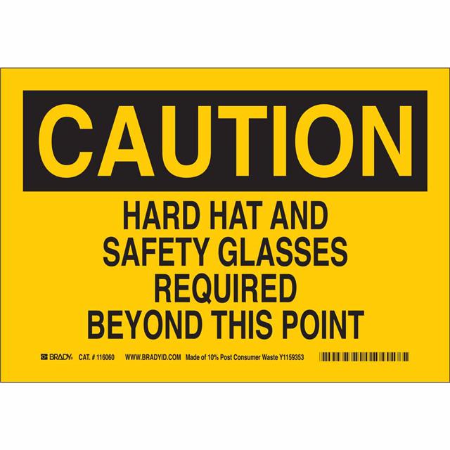 This is manufactured by Brady Corporation. The manufacturer part number is 118281. Label with a size of 14.00" l x 10.00" w (355.6mm x 254.0mm). The product is not applicable. It is assigned with possible HTSUS value of 3926.90.9985. It is shipped in bulk package . It has a classic black legend, yellow background colour. The product brady®, is a highly preferred choice for users. The product is made from highly stable and reliable plastic. In addition, it is reach unaffected. Its typical moisture sensitivity level is not applicable. A bespoke label is a caution. hard hat and safety glasses required beyond this point label. The product is designated with the ear99 code number.