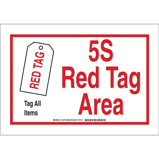 This is manufactured by Brady Corporation. The manufacturer part number is 122275. Label with a size of 10.00" l x 7.00" w (254.0mm x 177.8mm). The product is rohs3 compliant. It is assigned with possible HTSUS value of 3926.90.9989. It has a classic black and red legend, white background colour. The product brady®, is a highly preferred choice for users. The product is made from highly stable and reliable polyester. In addition, it is reach unaffected. Its typical moisture sensitivity level is not applicable. In addition, bulk is the available packaging type of the product. A bespoke label is a 5s red tag area tag all items label. It has a long 4 weeks standard lead time. The brady corporation's product offers user-desired applications. The product is designated with the ear99 code number.