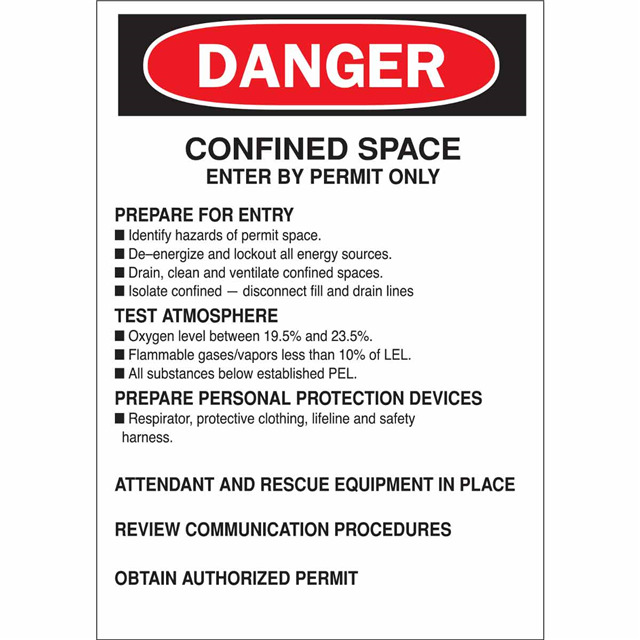 This is manufactured by Brady Corporation. The manufacturer part number is 122405. Label with a size of 10.00" l x 7.00" w (254.0mm x 177.8mm). The product is rohs3 compliant. It is assigned with possible HTSUS value of 8310.00.0000. It has a classic black and red legend, white background colour. The product brady®, is a highly preferred choice for users. The product is made from highly stable and reliable aluminum. In addition, it is reach unaffected. Its typical moisture sensitivity level is not applicable. In addition, bulk is the available packaging type of the product. A bespoke label is a danger. confined space enter by permit only prepare for enter by permit only prepare for entry identify hazards of permit spac… label. It has a long 4 weeks standard lead time. The brady corporation's product offers user-desired applications. The product is designated with the ear99 code number.