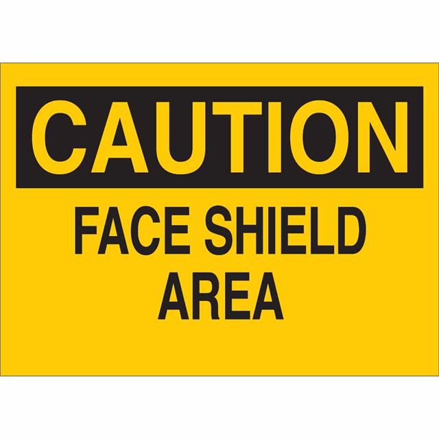 This is manufactured by Brady Corporation. The manufacturer part number is 122839. Label with a size of 10.00" l x 7.00" w (254.0mm x 177.8mm). The product is rohs3 compliant. It is assigned with possible HTSUS value of 3926.90.9985. It is shipped in bulk package . It has a classic black legend, yellow background colour. The product brady®, is a highly preferred choice for users. The product is made from highly stable and reliable fiberglass. In addition, it is reach unaffected. Its typical moisture sensitivity level is not applicable. A bespoke label is a caution. face shield area label. The product is suitable for use with caution. It has a long 4 weeks standard lead time. The product is designated with the ear99 code number.