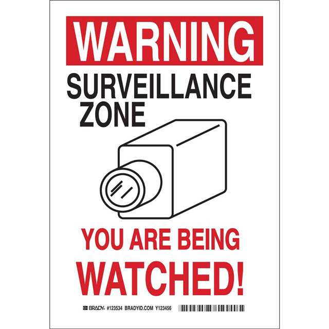 This is manufactured by Brady Corporation. The manufacturer part number is 123537. Label with a size of 14.00" l x 10.00" w (355.6mm x 254.0mm). The product is rohs3 compliant. It is assigned with possible HTSUS value of 3926.90.9989. It has a classic black and red legend, white background colour. The product brady®, is a highly preferred choice for users. The product is made from highly stable and reliable polyester. In addition, it is reach unaffected. Its typical moisture sensitivity level is not applicable. In addition, bulk is the available packaging type of the product. A bespoke label is a warning. surveillance zone you are being watched! label. The product is suitable for use with warning. It has a long 4 weeks standard lead time. The brady corporation's product offers user-desired applications. The product is designated with the ear99 code number.