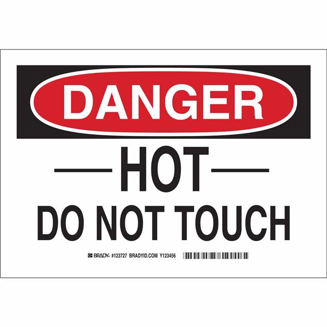 This is manufactured by Brady Corporation. The manufacturer part number is 123726. Label with a size of 10.00" l x 7.00" w (254.0mm x 177.8mm). The product is rohs3 compliant. It is assigned with possible HTSUS value of 3926.90.9985. It is shipped in bulk package . It has a classic black and red legend, white background colour. The product brady®, is a highly preferred choice for users. The product is made from highly stable and reliable polyester. In addition, it is reach unaffected. Its typical moisture sensitivity level is not applicable. A bespoke label is a danger. hot do not touch label. The product is suitable for use with warning. It has a long 4 weeks standard lead time. The product is designated with the ear99 code number.