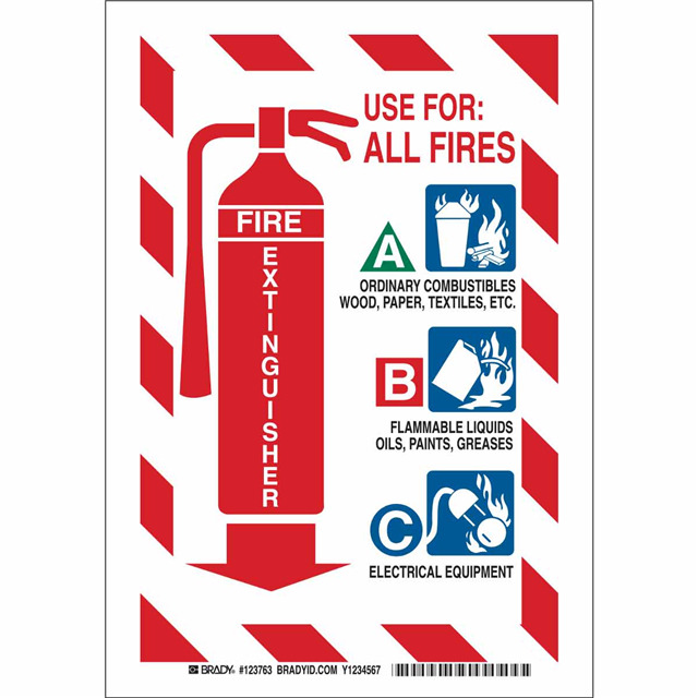 This is manufactured by Brady Corporation. The manufacturer part number is 123763. Label with a size of 10.00" l x 7.00" w (254.0mm x 177.8mm). The product is rohs3 compliant. It is assigned with possible HTSUS value of 3926.90.9989. It has a classic black, blue, green and red legend, white background colour. The product brady®, is a highly preferred choice for users. The product is made from highly stable and reliable polyester. In addition, it is reach unaffected. Its typical moisture sensitivity level is not applicable. In addition, bulk is the available packaging type of the product. A bespoke label is a use for all fires. a: ordinary combustibles, wood, paper, textiles, etc. b: flammable liquids oils, painting, greases c: electr… label. The product is suitable for use with fire. It has a long 4 weeks standard lead time. The brady corporation's product offers user-desired applications. The product is designated with the ear99 code number.