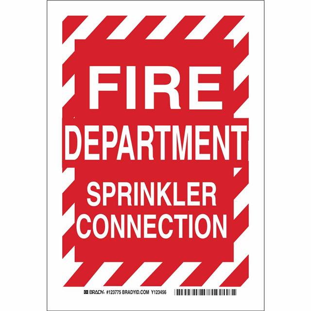 This is manufactured by Brady Corporation. The manufacturer part number is 123775. Label with a size of 10.00" l x 7.00" w (254.0mm x 177.8mm). The product is rohs3 compliant. It is assigned with possible HTSUS value of 3926.90.9989. It has a classic red legend, white background colour. The product brady®, is a highly preferred choice for users. The product is made from highly stable and reliable polyester. In addition, it is reach unaffected. Its typical moisture sensitivity level is not applicable. In addition, bulk is the available packaging type of the product. A bespoke label is a fire department sprinkler connection label. The product is suitable for use with fire. It has a long 4 weeks standard lead time. The brady corporation's product offers user-desired applications. The product is designated with the ear99 code number.