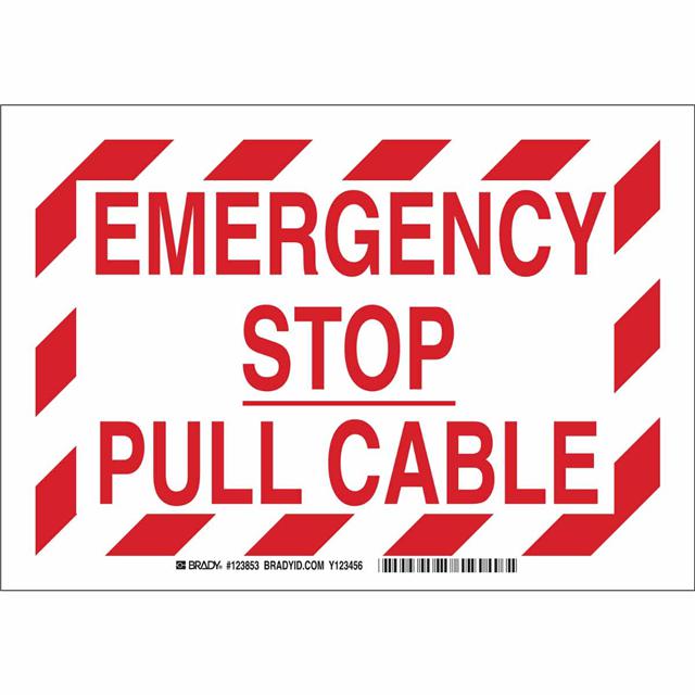 This is manufactured by Brady Corporation. The manufacturer part number is 123852. Label with a size of 10.00" l x 7.00" w (254.0mm x 177.8mm). The product is rohs3 compliant. It is assigned with possible HTSUS value of 3926.90.9985. It is shipped in bulk package . It has a classic red legend, white background colour. The product brady®, is a highly preferred choice for users. The product is made from highly stable and reliable polyester. In addition, it is reach unaffected. Its typical moisture sensitivity level is not applicable. A bespoke label is a emergency stop pull cable label. The product is suitable for use with emergency. It has a long 4 weeks standard lead time. The product is designated with the ear99 code number.