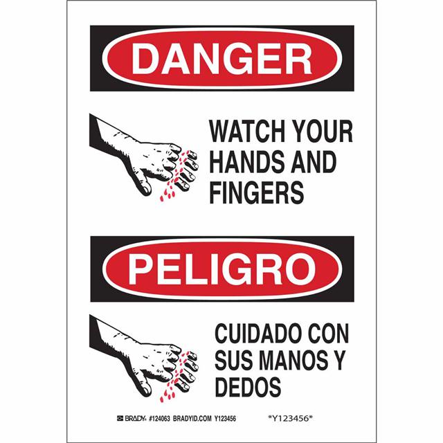 This is manufactured by Brady Corporation. The manufacturer part number is 124065. Label with a size of 14.00" l x 10.00" w (355.6mm x 254.0mm). The product is rohs3 compliant. It is assigned with possible HTSUS value of 3926.90.9985. It is shipped in bulk package . It has a classic black and red legend, white background colour. The product brady®, is a highly preferred choice for users. The product is made from highly stable and reliable polyester. In addition, it is reach unaffected. Its typical moisture sensitivity level is not applicable. A bespoke label is a watch your hands and fingers. cuidado coin sus manos y dedos label. The product is suitable for use with warning. It has a long 4 weeks standard lead time. The product is designated with the ear99 code number.