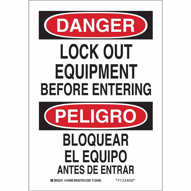 This is manufactured by Brady Corporation. The manufacturer part number is 124097. Label with a size of 10.00" l x 7.00" w (254.0mm x 177.8mm). The product is rohs3 compliant. It is assigned with possible HTSUS value of 8310.00.0000. It has a classic black and red legend, white background colour. The product brady®, is a highly preferred choice for users. The product is made from highly stable and reliable aluminum. In addition, it is reach unaffected. Its typical moisture sensitivity level is not applicable. In addition, bulk is the available packaging type of the product. A bespoke label is a danger. lock out electrical switches before entering/bloquear el equipo antes de entrar label. The product is suitable for use with danger. It has a long 4 weeks standard lead time. The brady corporation's product offers user-desired applications. The product is designated with the ear99 code number.