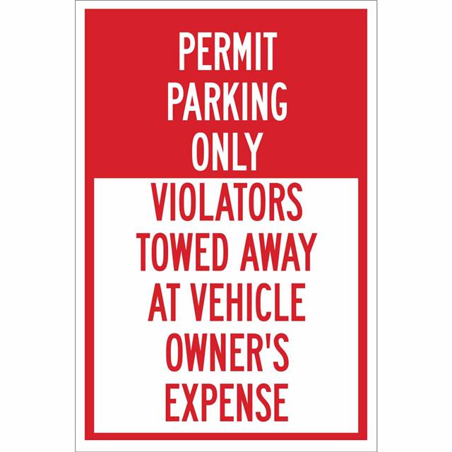 This is manufactured by Brady Corporation. The manufacturer part number is 124390. Label with a size of 18.00" l x 12.00" w (457.2mm x 304.8mm). The product is rohs3 compliant. It is assigned with possible HTSUS value of 3926.90.9985. It is shipped in bulk package . It has a classic red legend, white background colour. The product brady®, is a highly preferred choice for users. The product is made from highly stable and reliable polyester. In addition, it is reach unaffected. Its typical moisture sensitivity level is not applicable. A bespoke label is a permit parking only. violators towed away at vehicle owner's expense label. The product is suitable for use with lockout. It has a long 4 weeks standard lead time. The product is designated with the ear99 code number.