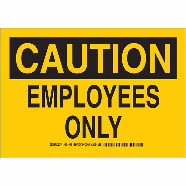This is manufactured by Brady Corporation. The manufacturer part number is 124681. Label with a size of 14.00" l x 10.00" w (355.6mm x 254.0mm). The product is rohs3 compliant. It is assigned with possible HTSUS value of 3926.90.9985. It is shipped in bulk package . It has a classic black legend, yellow background colour. The product brady®, is a highly preferred choice for users. The product is made from highly stable and reliable polyester. In addition, it is reach unaffected. Its typical moisture sensitivity level is not applicable. A bespoke label is a caution. employees only label. It has a long 4 weeks standard lead time. The product is designated with the ear99 code number.
