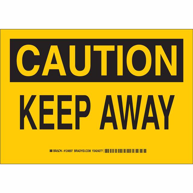This is manufactured by Brady Corporation. The manufacturer part number is 124696. Label with a size of 10.00" l x 7.00" w (254.0mm x 177.8mm). The product is rohs3 compliant. It is assigned with possible HTSUS value of 3926.90.9985. It is shipped in bulk package . It has a classic black legend, yellow background colour. The product brady®, is a highly preferred choice for users. The product is made from highly stable and reliable polyester. In addition, it is reach unaffected. Its typical moisture sensitivity level is not applicable. A bespoke label is a caution. keep away label. The product is suitable for use with warning. The product is designated with the ear99 code number.