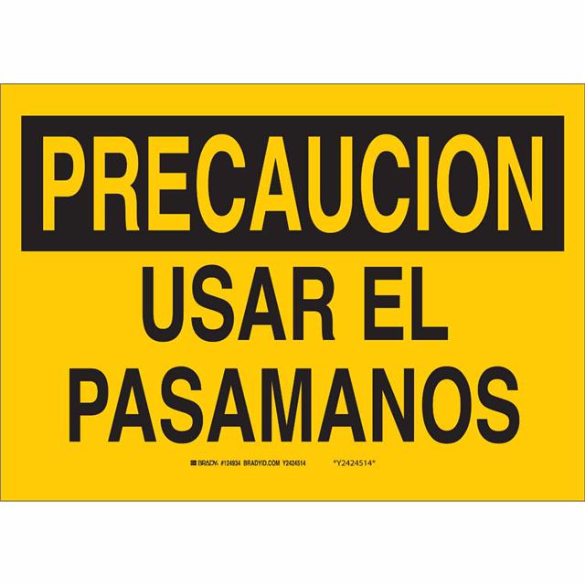 This is manufactured by Brady Corporation. The manufacturer part number is 124933. Label with a size of 14.00" l x 10.00" w (355.6mm x 254.0mm). The product is rohs3 compliant. It is assigned with possible HTSUS value of 3926.90.9985. It is shipped in bulk package . It has a classic black legend, yellow background colour. The product brady®, is a highly preferred choice for users. The product is made from highly stable and reliable polyester. In addition, it is reach unaffected. Its typical moisture sensitivity level is not applicable. A bespoke label is a precaucion. usar el pasamanos label. The product is suitable for use with caution. It has a long 4 weeks standard lead time. The product is designated with the ear99 code number.