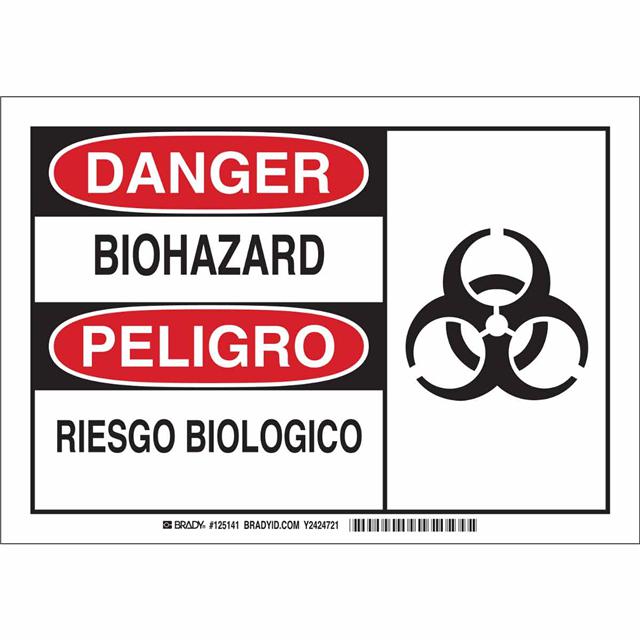 This is manufactured by Brady Corporation. The manufacturer part number is 125143. Label with a size of 14.00" l x 10.00" w (355.6mm x 254.0mm). The product is rohs3 compliant. It is assigned with possible HTSUS value of 3926.90.9985. It is shipped in bulk package . It has a classic black and red legend, white background colour. The product brady®, is a highly preferred choice for users. The product is made from highly stable and reliable polyester. In addition, it is reach unaffected. Its typical moisture sensitivity level is not applicable. A bespoke label is a bio hazard. riesgo biologico label. The product is suitable for use with warning. It has a long 4 weeks standard lead time. The product is designated with the ear99 code number.