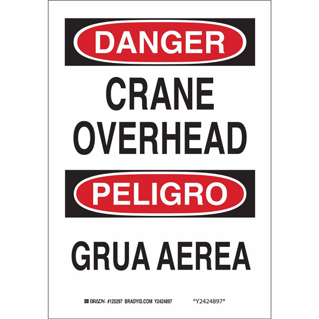 This is manufactured by Brady Corporation. The manufacturer part number is 125173. Label with a size of 14.00" l x 10.00" w (355.6mm x 254.0mm). The product is rohs3 compliant. It is assigned with possible HTSUS value of 3926.90.9989. It has a classic black and red legend, white background colour. The product brady®, is a highly preferred choice for users. The product is made from highly stable and reliable polyester. In addition, it is reach unaffected. Its typical moisture sensitivity level is not applicable. In addition, bulk is the available packaging type of the product. A bespoke label is a danger/peligro. crane overhead/grua aerea label. The product is suitable for use with danger. It has a long 4 weeks standard lead time. The brady corporation's product offers user-desired applications. The product is designated with the ear99 code number.