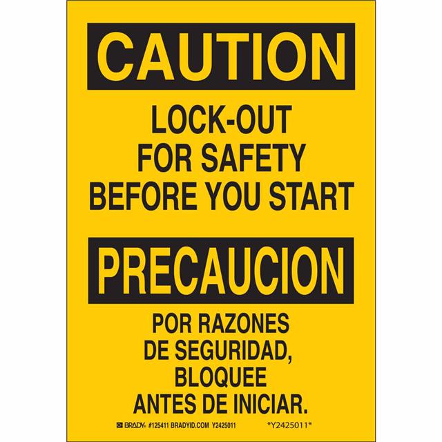 This is manufactured by Brady Corporation. The manufacturer part number is 125410. Label with a size of 10.00" l x 7.00" w (254.0mm x 177.8mm). The product is rohs3 compliant. It is assigned with possible HTSUS value of 3926.90.9989. It has a classic black legend, yellow background colour. The product brady®, is a highly preferred choice for users. The product is made from highly stable and reliable polyester. In addition, it is reach unaffected. Its typical moisture sensitivity level is not applicable. In addition, bulk is the available packaging type of the product. A bespoke label is a caution/precaucionlock-out for safety before you start/por razones de seguridad, bloquee antes de iniciar label. The product is suitable for use with safety. It has a long 4 weeks standard lead time. The brady corporation's product offers user-desired applications. The product is designated with the ear99 code number.