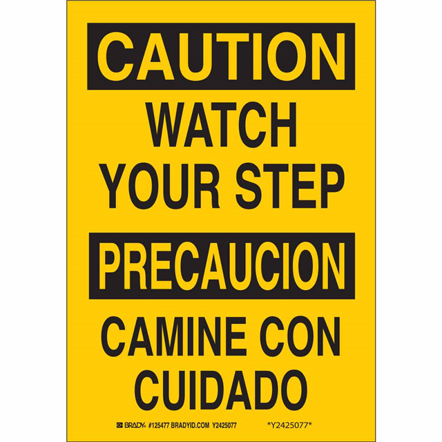This is manufactured by Brady Corporation. The manufacturer part number is 125475. Label with a size of 10.00" l x 7.00" w (254.0mm x 177.8mm). The product is not applicable. It is assigned with possible HTSUS value of 8310.00.0000. It has a classic black legend, yellow background colour. The product brady®, is a highly preferred choice for users. The product is made from highly stable and reliable aluminum. In addition, it is reach affected. Its typical moisture sensitivity level is not applicable. In addition, bulk is the available packaging type of the product. A bespoke label is a caution/precaucionwatch your step/camine con cuidado label. The product is suitable for use with warning. It has a long 4 weeks standard lead time. The brady corporation's product offers user-desired applications. The product is designated with the ear99 code number.