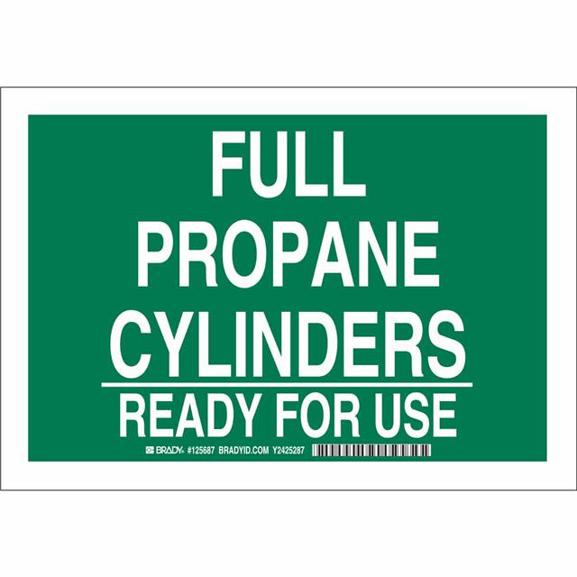 This is manufactured by Brady Corporation. The manufacturer part number is 125686. Label with a size of 10.00" l x 7.00" w (254.0mm x 177.8mm). The product is rohs3 compliant. It is assigned with possible HTSUS value of 3926.90.9985. It is shipped in bulk package . It has a classic white legend, green background colour. The product brady®, is a highly preferred choice for users. The product is made from highly stable and reliable polyester. In addition, it is reach unaffected. Its typical moisture sensitivity level is not applicable. A bespoke label is a full propane cylinders ready for use label. The product is suitable for use with notice. It has a long 4 weeks standard lead time. The product is designated with the ear99 code number.