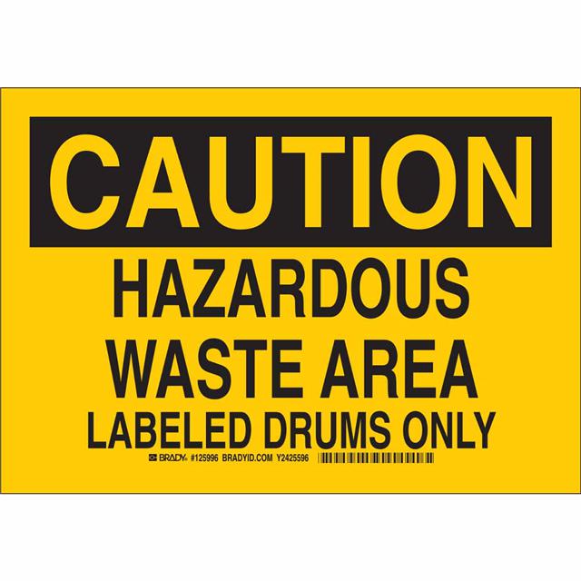 This is manufactured by Brady Corporation. The manufacturer part number is 125995. Label with a size of 10.00" l x 7.00" w (254.0mm x 177.8mm). The product is rohs3 compliant. It is assigned with possible HTSUS value of 3926.90.9989. It has a classic black legend, yellow background colour. The product brady®, is a highly preferred choice for users. The product is made from highly stable and reliable polyester. In addition, it is reach unaffected. Its typical moisture sensitivity level is not applicable. In addition, bulk is the available packaging type of the product. A bespoke label is a caution. hazardous waste area labeled drums only label. It has a long 4 weeks standard lead time. The brady corporation's product offers user-desired applications. The product is designated with the ear99 code number.