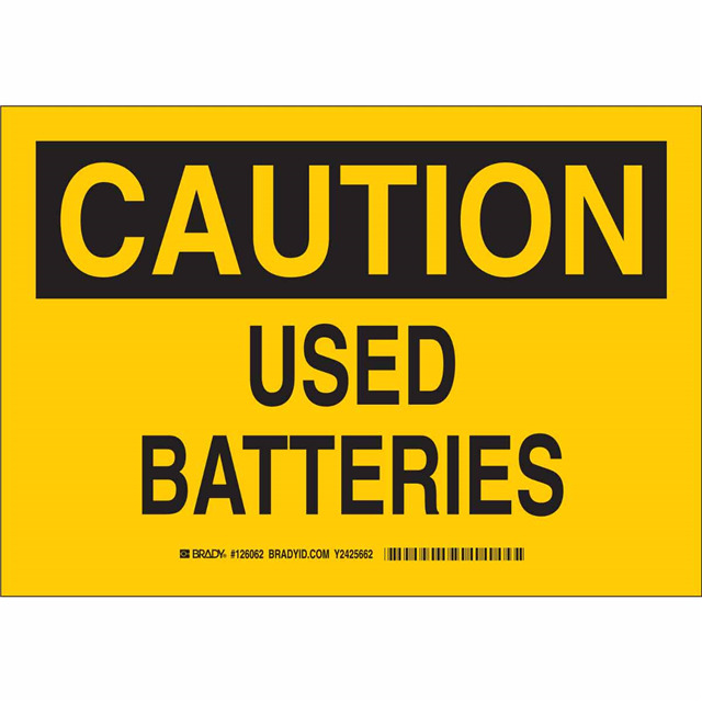 This is manufactured by Brady Corporation. The manufacturer part number is 126062. Label with a size of 10.00" l x 7.00" w (254.0mm x 177.8mm). The product is rohs3 compliant. It is assigned with possible HTSUS value of 3926.90.9989. It has a classic black legend, yellow background colour. The product brady®, is a highly preferred choice for users. The product is made from highly stable and reliable polyester. In addition, it is reach unaffected. Its typical moisture sensitivity level is not applicable. In addition, bulk is the available packaging type of the product. A bespoke label is a caution. used batteries label. It has a long 4 weeks standard lead time. The brady corporation's product offers user-desired applications. The product is designated with the ear99 code number.