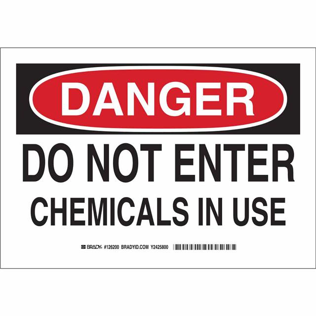 This is manufactured by Brady Corporation. The manufacturer part number is 126198. Label with a size of 10.00" l x 7.00" w (254.0mm x 177.8mm). The product is rohs3 compliant. It is assigned with possible HTSUS value of 8310.00.0000. It is shipped in bulk package . It has a classic black and red legend, white background colour. The product brady®, is a highly preferred choice for users. The product is made from highly stable and reliable aluminum. In addition, it is reach unaffected. Its typical moisture sensitivity level is not applicable. A bespoke label is a danger. do not enter chemicals in use label. It has a long 4 weeks standard lead time. The product is designated with the ear99 code number.
