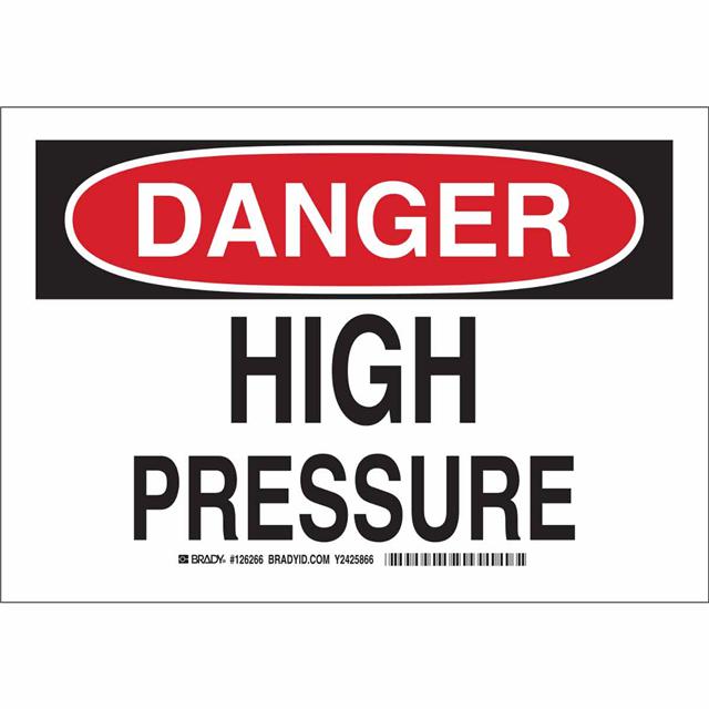 This is manufactured by Brady Corporation. The manufacturer part number is 126265. Label with a size of 10.00" l x 7.00" w (254.0mm x 177.8mm). The product is rohs3 compliant. It is assigned with possible HTSUS value of 3926.90.9989. It has a classic black and red legend, white background colour. The product brady®, is a highly preferred choice for users. The product is made from highly stable and reliable polyester. In addition, it is reach unaffected. Its typical moisture sensitivity level is not applicable. In addition, bulk is the available packaging type of the product. A bespoke label is a danger. high pressure label. The product is suitable for use with danger. It has a long 4 weeks standard lead time. The brady corporation's product offers user-desired applications. The product is designated with the ear99 code number.