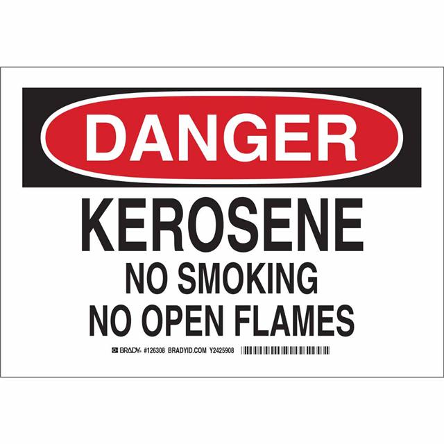 This is manufactured by Brady Corporation. The manufacturer part number is 126310. Label with a size of 14.00" l x 10.00" w (355.6mm x 254.0mm). The product is rohs3 compliant. It is assigned with possible HTSUS value of 3926.90.9985. It is shipped in bulk package . It has a classic black and red legend, white background colour. The product brady®, is a highly preferred choice for users. The product is made from highly stable and reliable polyester. In addition, it is reach unaffected. Its typical moisture sensitivity level is not applicable. A bespoke label is a danger. kerosene no smoking no open flames label. The product is suitable for use with danger. It has a long 4 weeks standard lead time. The product is designated with the ear99 code number.