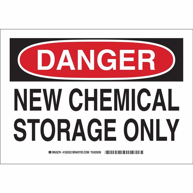 This is manufactured by Brady Corporation. The manufacturer part number is 126331. Label with a size of 10.00" l x 7.00" w (254.0mm x 177.8mm). The product is rohs3 compliant. It is assigned with possible HTSUS value of 3926.90.9985. It is shipped in bulk package . It has a classic black and red legend, white background colour. The product brady®, is a highly preferred choice for users. The product is made from highly stable and reliable polyester. In addition, it is reach unaffected. Its typical moisture sensitivity level is not applicable. A bespoke label is a danger. new chemical storage only label. It has a long 4 weeks standard lead time. The product is designated with the ear99 code number.