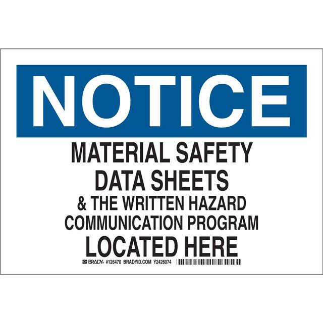 This is manufactured by Brady Corporation. The manufacturer part number is 126470. Label with a size of 10.00" l x 7.00" w (254.0mm x 177.8mm). The product is rohs3 compliant. It is assigned with possible HTSUS value of 3926.90.9985. It is shipped in bulk package . It has a classic black and blue legend, white background colour. The product brady®, is a highly preferred choice for users. The product is made from highly stable and reliable polyester. In addition, it is reach unaffected. Its typical moisture sensitivity level is not applicable. A bespoke label is a notice. material safety data sheets & the written hazard communication program located here label. It has a long 4 weeks standard lead time. The product is designated with the ear99 code number.