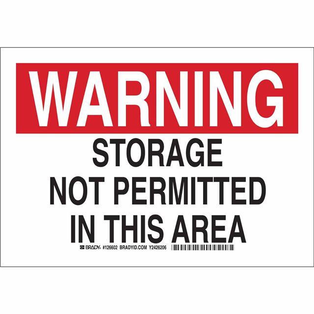 This is manufactured by Brady Corporation. The manufacturer part number is 126604. Label with a size of 14.00" l x 10.00" w (355.6mm x 254.0mm). The product is rohs3 compliant. It is assigned with possible HTSUS value of 3926.90.9989. It has a classic black and red legend, white background colour. The product brady®, is a highly preferred choice for users. The product is made from highly stable and reliable polyester. In addition, it is reach unaffected. Its typical moisture sensitivity level is not applicable. In addition, bulk is the available packaging type of the product. A bespoke label is a warning. storage not permitted in this area label. The product is suitable for use with warning. It has a long 4 weeks standard lead time. The brady corporation's product offers user-desired applications. The product is designated with the ear99 code number.