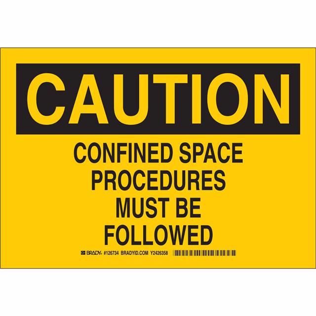 This is manufactured by Brady Corporation. The manufacturer part number is 126736. Label with a size of 14.00" l x 10.00" w (355.6mm x 254.0mm). The product is rohs3 compliant. It is assigned with possible HTSUS value of 3926.90.9985. It is shipped in bulk package . It has a classic black legend, yellow background colour. The product brady®, is a highly preferred choice for users. The product is made from highly stable and reliable polyester. In addition, it is reach unaffected. Its typical moisture sensitivity level is not applicable. A bespoke label is a caution. confined space procedures must be followed label. The product is designated with the ear99 code number.