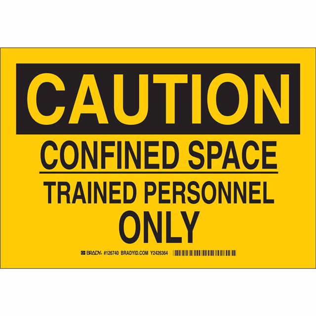 This is manufactured by Brady Corporation. The manufacturer part number is 126740. Label with a size of 10.00" l x 7.00" w (254.0mm x 177.8mm). The product is rohs3 compliant. It is assigned with possible HTSUS value of 3926.90.9985. It is shipped in bulk package . It has a classic black legend, yellow background colour. The product brady®, is a highly preferred choice for users. The product is made from highly stable and reliable polyester. In addition, it is reach unaffected. Its typical moisture sensitivity level is not applicable. A bespoke label is a caution. confined space trained personnel only label. The product is designated with the ear99 code number.
