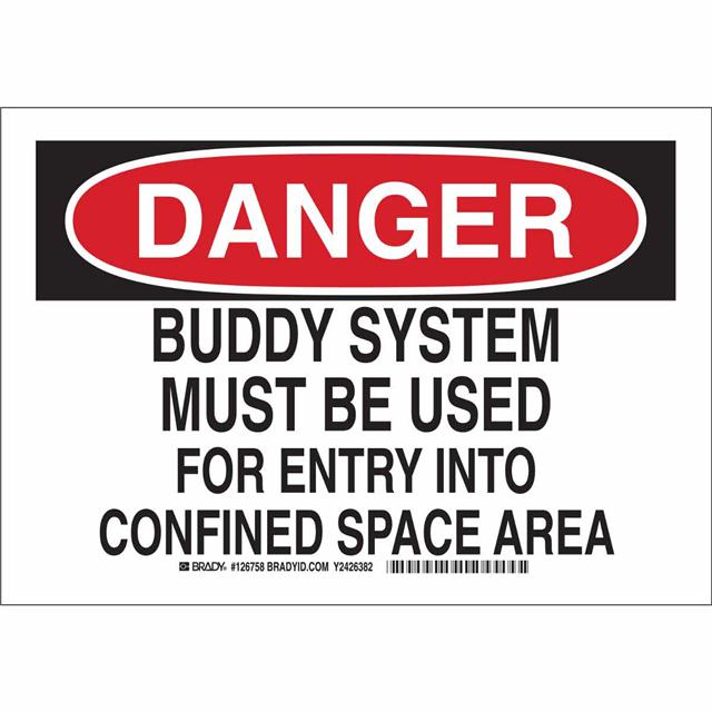 This is manufactured by Brady Corporation. The manufacturer part number is 126758. Label with a size of 10.00" l x 7.00" w (254.0mm x 177.8mm). The product is rohs3 compliant. It is assigned with possible HTSUS value of 3926.90.9985. It is shipped in bulk package . It has a classic black and red legend, white background colour. The product brady®, is a highly preferred choice for users. The product is made from highly stable and reliable polyester. In addition, it is reach unaffected. Its typical moisture sensitivity level is not applicable. A bespoke label is a danger. buddy system must be used for entry into confined space area label. It has a long 4 weeks standard lead time. The product is designated with the ear99 code number.