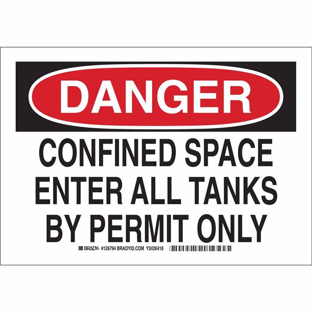 This is manufactured by Brady Corporation. The manufacturer part number is 126796. Label with a size of 14.00" l x 10.00" w (355.6mm x 254.0mm). The product is rohs3 compliant. It is assigned with possible HTSUS value of 3926.90.9989. It has a classic black and red legend, white background colour. The product brady®, is a highly preferred choice for users. The product is made from highly stable and reliable polyester. In addition, it is reach unaffected. Its typical moisture sensitivity level is not applicable. In addition, bulk is the available packaging type of the product. A bespoke label is a danger. confined space enter all tanks by permit only label. It has a long 4 weeks standard lead time. The brady corporation's product offers user-desired applications. The product is designated with the ear99 code number.