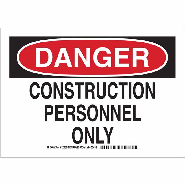 This is manufactured by Brady Corporation. The manufacturer part number is 126880. Label with a size of 14.00" l x 10.00" w (355.6mm x 254.0mm). The product is rohs3 compliant. It is assigned with possible HTSUS value of 3926.90.9985. It is shipped in bulk package . It has a classic black and red legend, white background colour. The product brady®, is a highly preferred choice for users. The product is made from highly stable and reliable polyester. In addition, it is reach unaffected. Its typical moisture sensitivity level is not applicable. A bespoke label is a danger. construction personnel only label. It has a long 4 weeks standard lead time. The product is designated with the ear99 code number.