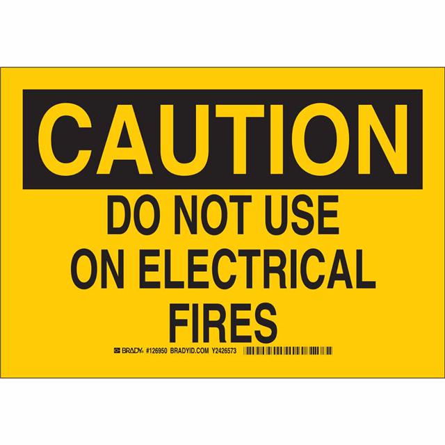 This is manufactured by Brady Corporation. The manufacturer part number is 126952. Label with a size of 14.00" l x 10.00" w (355.6mm x 254.0mm). The product is rohs3 compliant. It is assigned with possible HTSUS value of 3926.90.9985. It is shipped in bulk package . It has a classic black legend, yellow background colour. The product brady®, is a highly preferred choice for users. The product is made from highly stable and reliable polyester. In addition, it is reach unaffected. Its typical moisture sensitivity level is not applicable. A bespoke label is a caution. do not use on electrical fires label. The product is suitable for use with voltage. It has a long 4 weeks standard lead time. The product is designated with the ear99 code number.
