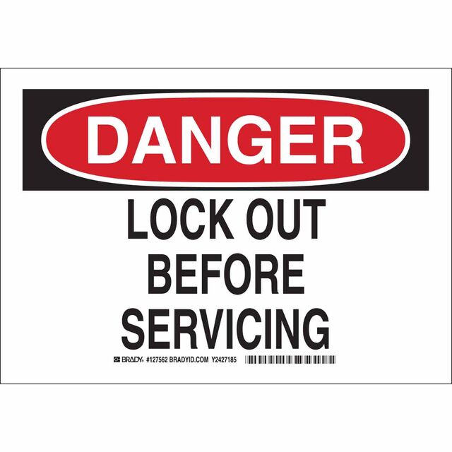 This is manufactured by Brady Corporation. The manufacturer part number is 127561. Label with a size of 10.00" l x 7.00" w (254.0mm x 177.8mm). The product is rohs3 compliant. It is assigned with possible HTSUS value of 3926.90.9989. It has a classic black and red legend, white background colour. The product brady®, is a highly preferred choice for users. The product is made from highly stable and reliable polyester. In addition, it is reach unaffected. Its typical moisture sensitivity level is not applicable. In addition, bulk is the available packaging type of the product. A bespoke label is a danger. lock out before servicing label. The product is suitable for use with danger. It has a long 4 weeks standard lead time. The brady corporation's product offers user-desired applications. The product is designated with the ear99 code number.