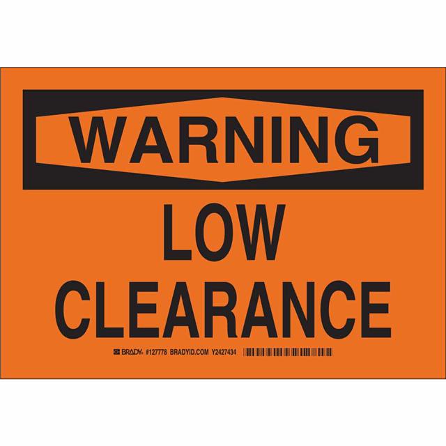 This is manufactured by Brady Corporation. The manufacturer part number is 127778. Label with a size of 10.00" l x 7.00" w (254.0mm x 177.8mm). The product is rohs3 compliant. It is assigned with possible HTSUS value of 3926.90.9985. It is shipped in bulk package . It has a classic black legend, orange background colour. The product brady®, is a highly preferred choice for users. The product is made from highly stable and reliable polyester. In addition, it is reach unaffected. Its typical moisture sensitivity level is not applicable. A bespoke label is a warning. low clearance label. The product is suitable for use with warning. It has a long 4 weeks standard lead time. The product is designated with the ear99 code number.