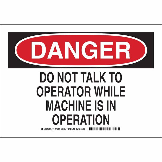 This is manufactured by Brady Corporation. The manufacturer part number is 127844. Label with a size of 10.00" l x 7.00" w (254.0mm x 177.8mm). The product is rohs3 compliant. It is assigned with possible HTSUS value of 3926.90.9989. It has a classic black and red legend, white background colour. The product brady®, is a highly preferred choice for users. The product is made from highly stable and reliable polyester. In addition, it is reach unaffected. Its typical moisture sensitivity level is not applicable. In addition, bulk is the available packaging type of the product. A bespoke label is a danger. do not talk to operator while machine is inoperation label. The product is suitable for use with danger. It has a long 4 weeks standard lead time. The brady corporation's product offers user-desired applications. The product is designated with the ear99 code number.