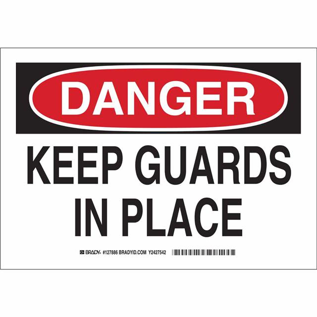 This is manufactured by Brady Corporation. The manufacturer part number is 127884. Label with a size of 10.00" l x 7.00" w (254.0mm x 177.8mm). The product is rohs3 compliant. It is assigned with possible HTSUS value of 8310.00.0000. It is shipped in bulk package . It has a classic black and red legend, white background colour. The product brady®, is a highly preferred choice for users. The product is made from highly stable and reliable aluminum. In addition, it is reach unaffected. Its typical moisture sensitivity level is not applicable. A bespoke label is a danger. keep guards in place label. The product is suitable for use with danger. The product is designated with the ear99 code number.