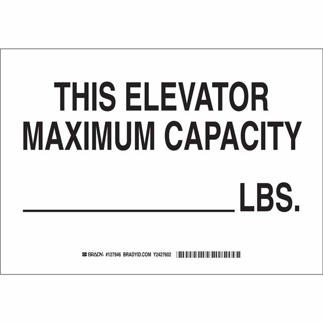 This is manufactured by Brady Corporation. The manufacturer part number is 127946. Label with a size of 10.00" l x 7.00" w (254.0mm x 177.8mm). The product is rohs3 compliant. It is assigned with possible HTSUS value of 3926.90.9985. It is shipped in bulk package . It has a classic black legend, white background colour. The product brady®, is a highly preferred choice for users. The product is made from highly stable and reliable polyester. In addition, it is reach unaffected. Its typical moisture sensitivity level is not applicable. A bespoke label is a this elevator maximum capacity. lbs label. It has a long 4 weeks standard lead time. The product is designated with the ear99 code number.