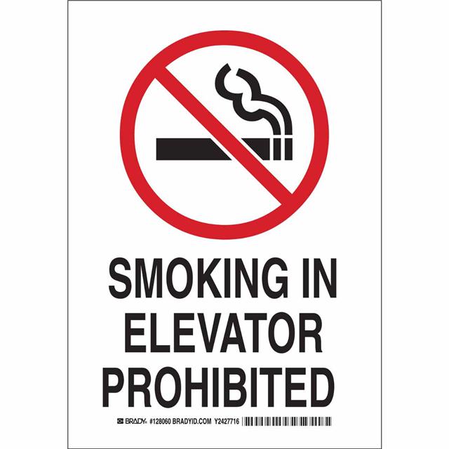 This is manufactured by Brady Corporation. The manufacturer part number is 128059. Label with a size of 10.00" l x 7.00" w (254.0mm x 177.8mm). The product is rohs3 compliant. It is assigned with possible HTSUS value of 3926.90.9985. It is shipped in bulk package . It has a classic black and red legend, white background colour. The product brady®, is a highly preferred choice for users. The product is made from highly stable and reliable polyester. In addition, it is reach unaffected. Its typical moisture sensitivity level is not applicable. A bespoke label is a smoking in elevator prohibited label. It has a long 4 weeks standard lead time. The product is designated with the ear99 code number.