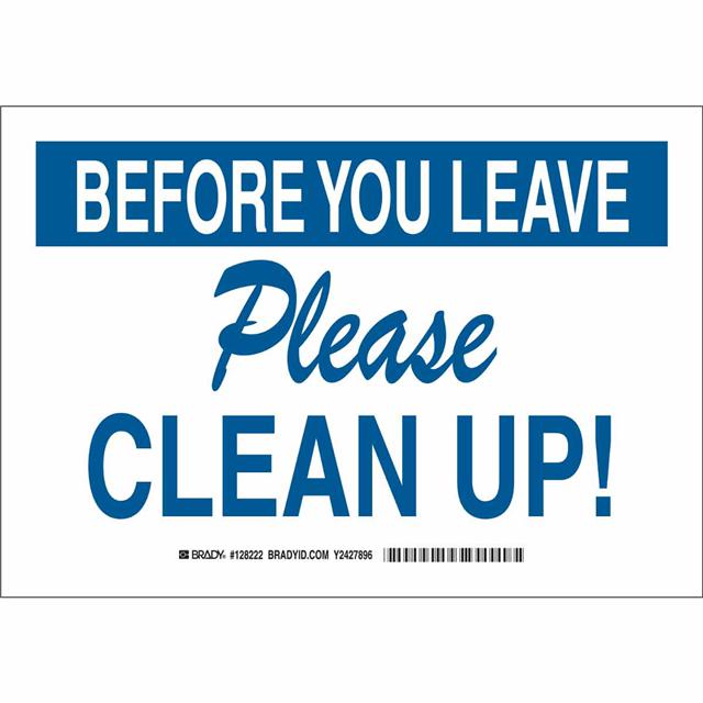 This is manufactured by Brady Corporation. The manufacturer part number is 128224. Label with a size of 14.00" l x 10.00" w (355.6mm x 254.0mm). The product is rohs3 compliant. It is assigned with possible HTSUS value of 3926.90.9985. It is shipped in bulk package . It has a classic blue legend, white background colour. The product brady®, is a highly preferred choice for users. The product is made from highly stable and reliable polyester. In addition, it is reach unaffected. Its typical moisture sensitivity level is not applicable. A bespoke label is a before you leave please clean up! label. It has a long 4 weeks standard lead time. The product is designated with the ear99 code number.