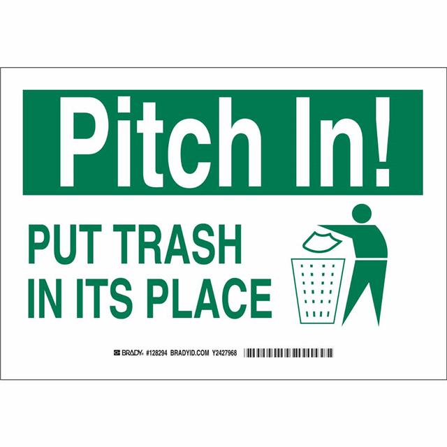 This is manufactured by Brady Corporation. The manufacturer part number is 128293. Label with a size of 10.00" l x 7.00" w (254.0mm x 177.8mm). The product is rohs3 compliant. It is assigned with possible HTSUS value of 3926.90.9985. It is shipped in bulk package . It has a classic green legend, white background colour. The product brady®, is a highly preferred choice for users. The product is made from highly stable and reliable polyester. In addition, it is reach unaffected. Its typical moisture sensitivity level is not applicable. A bespoke label is a pitchin!. put trash in its place label. The product is suitable for use with warning. It has a long 4 weeks standard lead time. The product is designated with the ear99 code number.