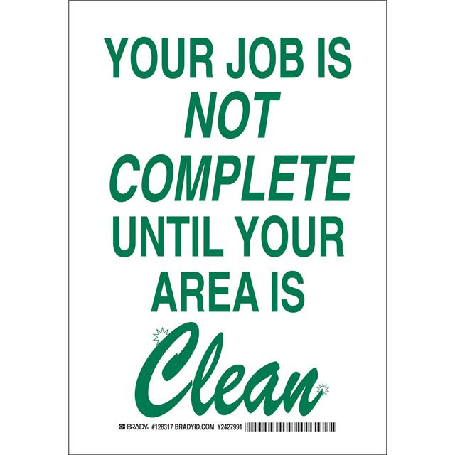 This is manufactured by Brady Corporation. The manufacturer part number is 128317. Label with a size of 10.00" l x 7.00" w (254.0mm x 177.8mm). The product is rohs3 compliant. It is assigned with possible HTSUS value of 3926.90.9985. It is shipped in bulk package . It has a classic green legend, white background colour. The product brady®, is a highly preferred choice for users. The product is made from highly stable and reliable polyester. In addition, it is reach unaffected. Its typical moisture sensitivity level is not applicable. A bespoke label is a your job is not complete until your area is clean label. It has a long 4 weeks standard lead time. The product is designated with the ear99 code number.