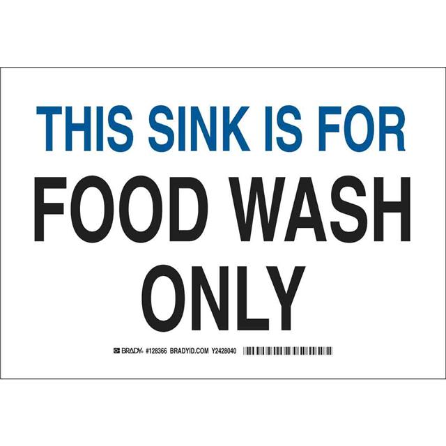This is manufactured by Brady Corporation. The manufacturer part number is 128364. Label with a size of 10.00" l x 7.00" w (254.0mm x 177.8mm). The product is rohs3 compliant. It is assigned with possible HTSUS value of 8310.00.0000. It is shipped in bulk package . It has a classic black and blue legend, white background colour. The product brady®, is a highly preferred choice for users. The product is made from highly stable and reliable aluminum. In addition, it is reach unaffected. Its typical moisture sensitivity level is not applicable. A bespoke label is a this sink is for food wash only label. It has a long 4 weeks standard lead time. The product is designated with the ear99 code number.
